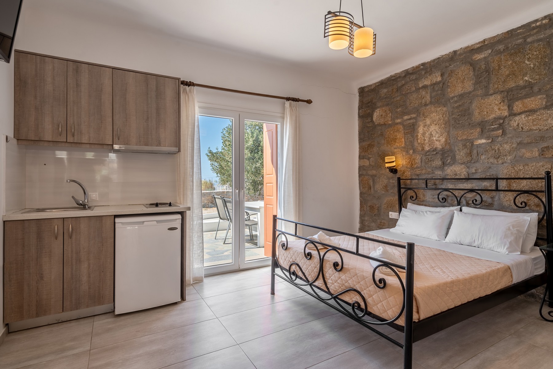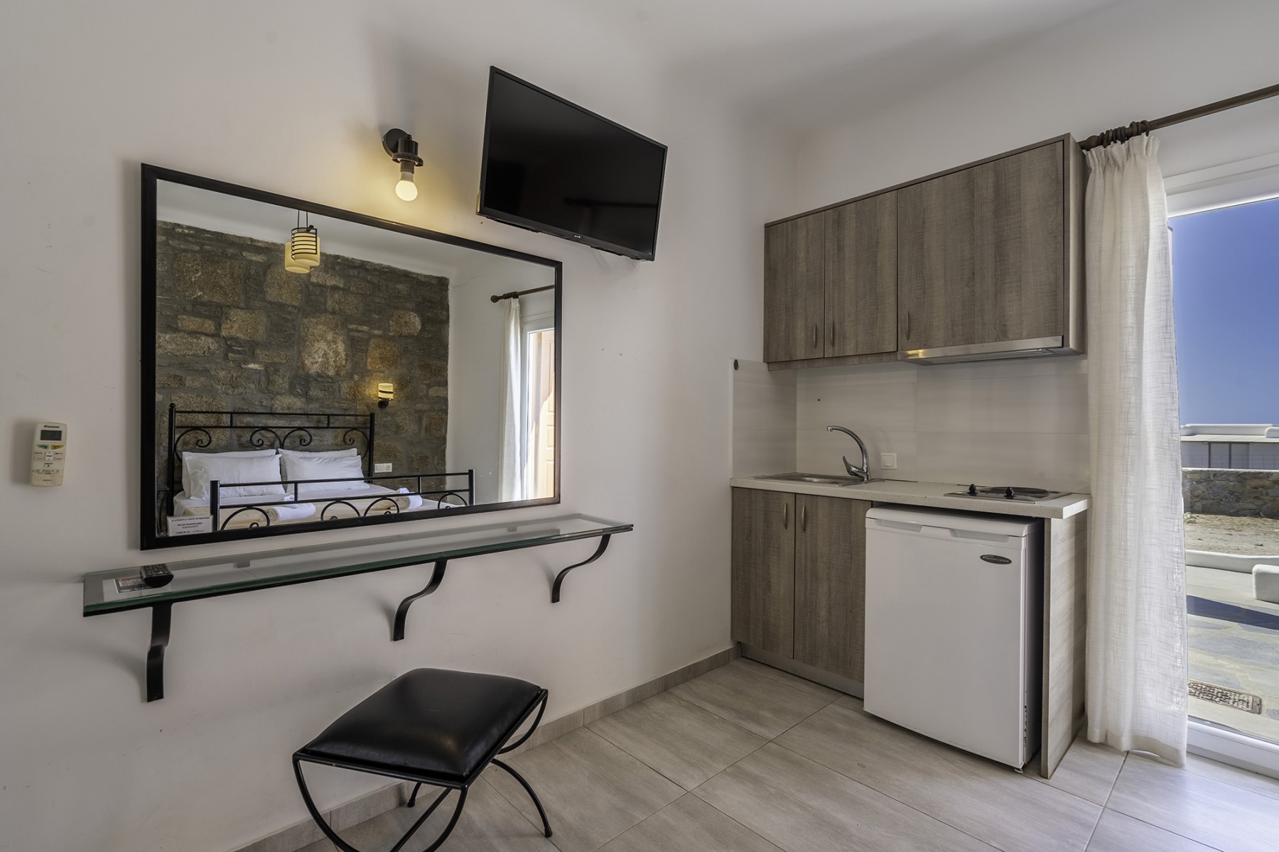 Vous pourrez préparer vos repas dans la cuisine équipée d'une cuisinière, d'un réfrigérateur, d'ustensiles de cuisine et d'une cafetière/théière. Le studio dispose de la climatisation, d'une entrée privée, d'une terrasse avec vue sur le jardin et d'une salle de bains privative avec baignoire. Le logement comprend deux lits.